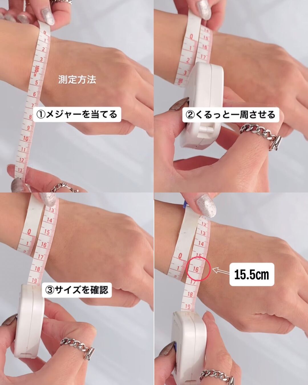① 手首にメジャーを当てる