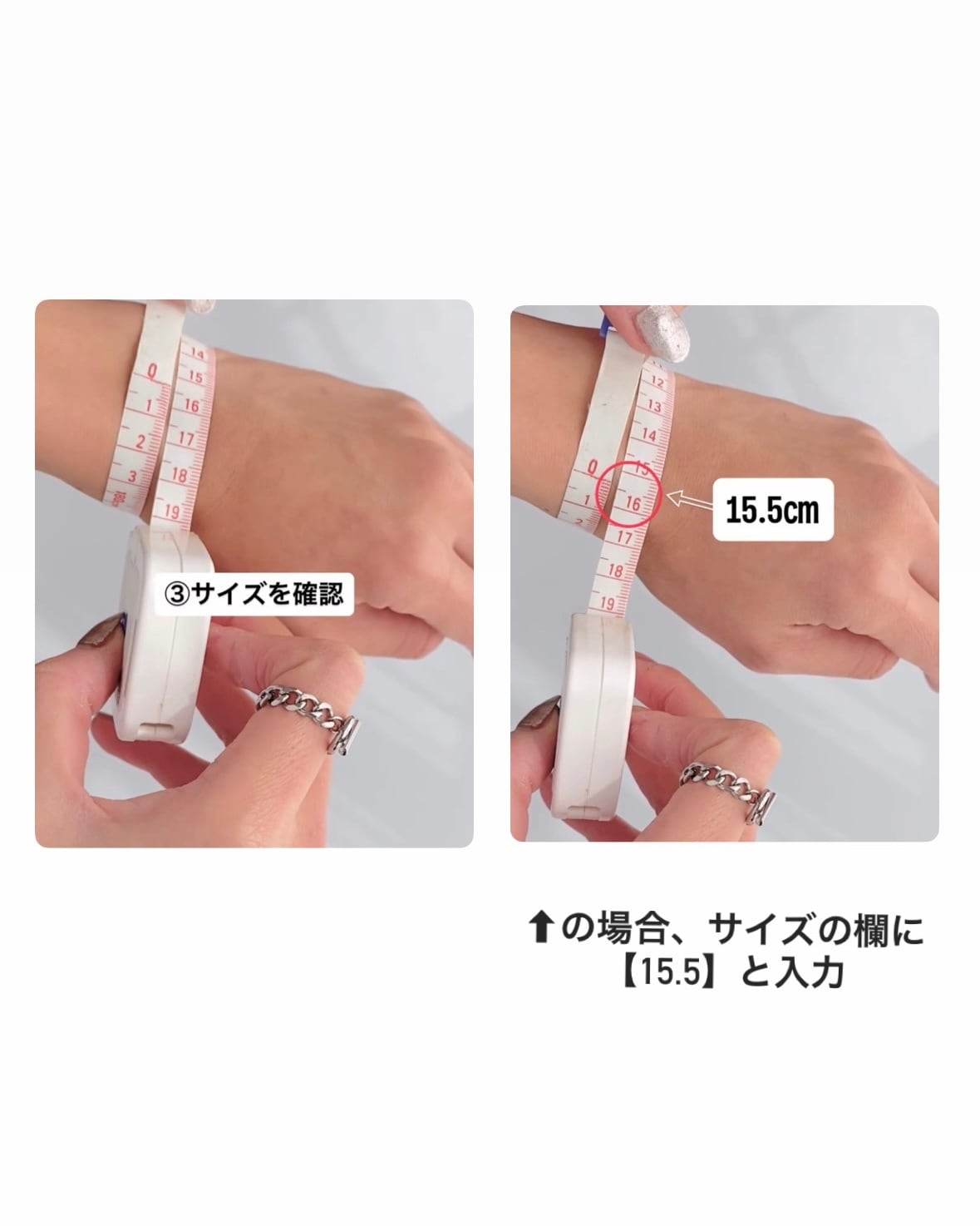 ご注文時に、ページ下部の記入欄へ【手首の太さ(cm)】をご記入ください。