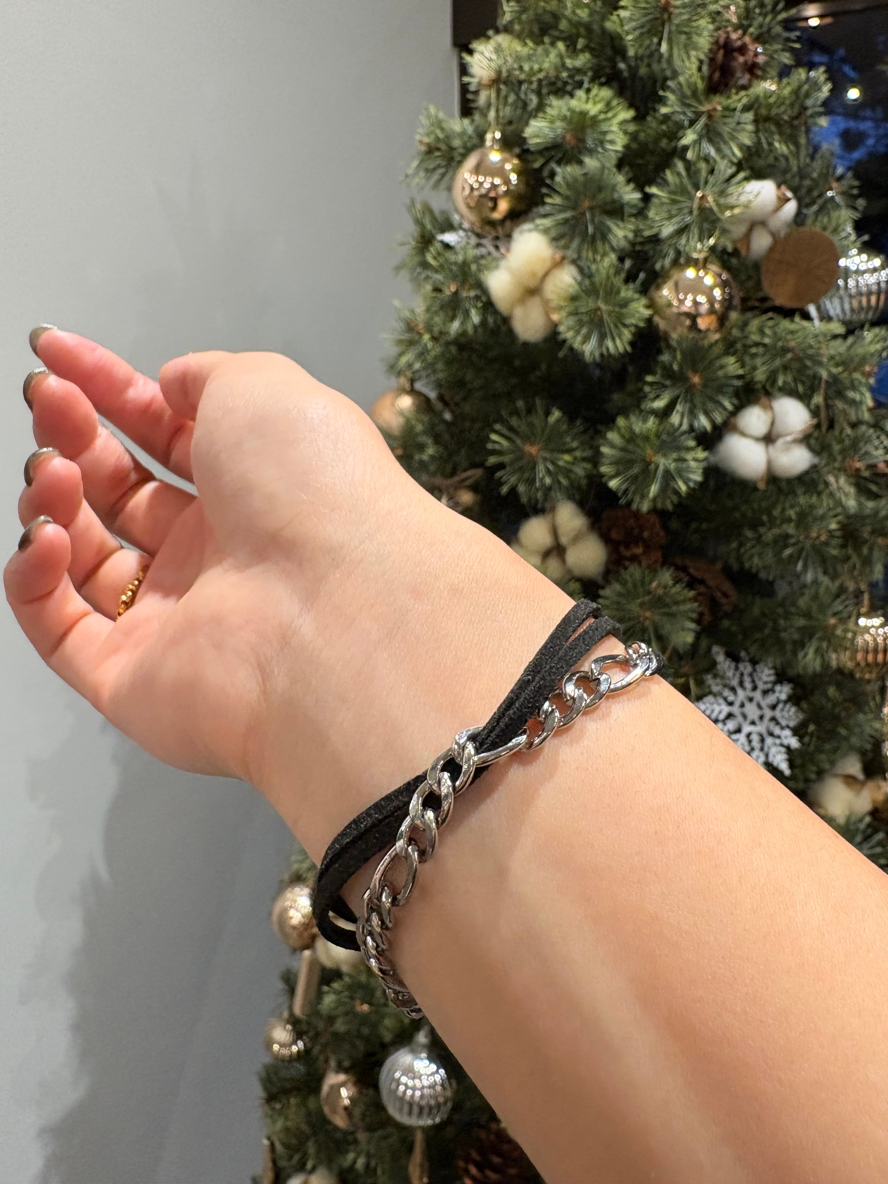 ・スエード紐が飛び出てきた場合、優しくチェーン側を対角に引っ張ると紐が戻ります。