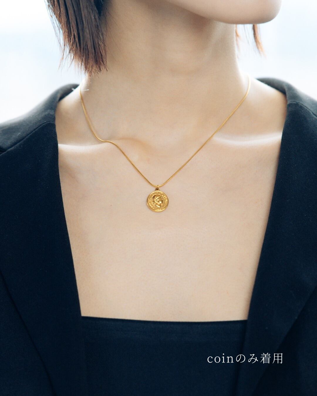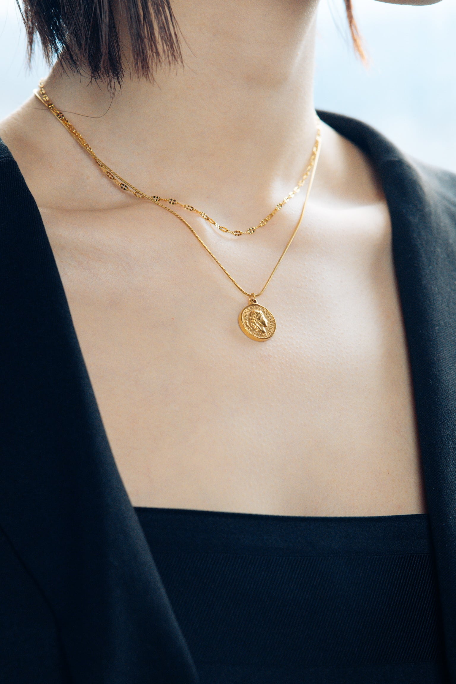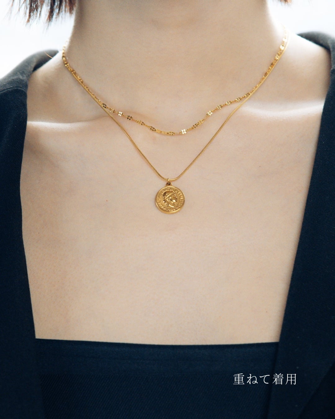 【人気No.1】重ね付けネックレス 2本セット|coin × wave(gold)