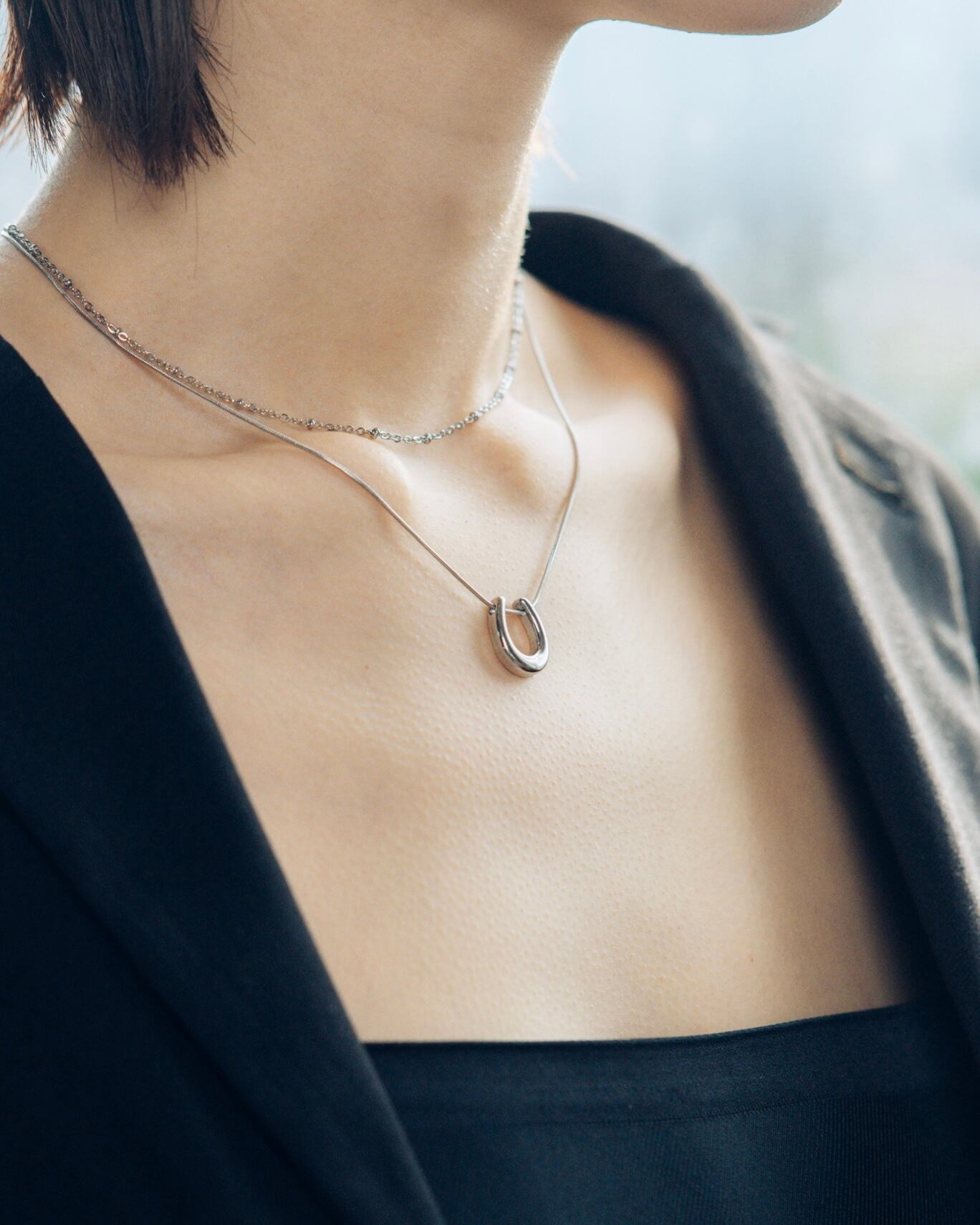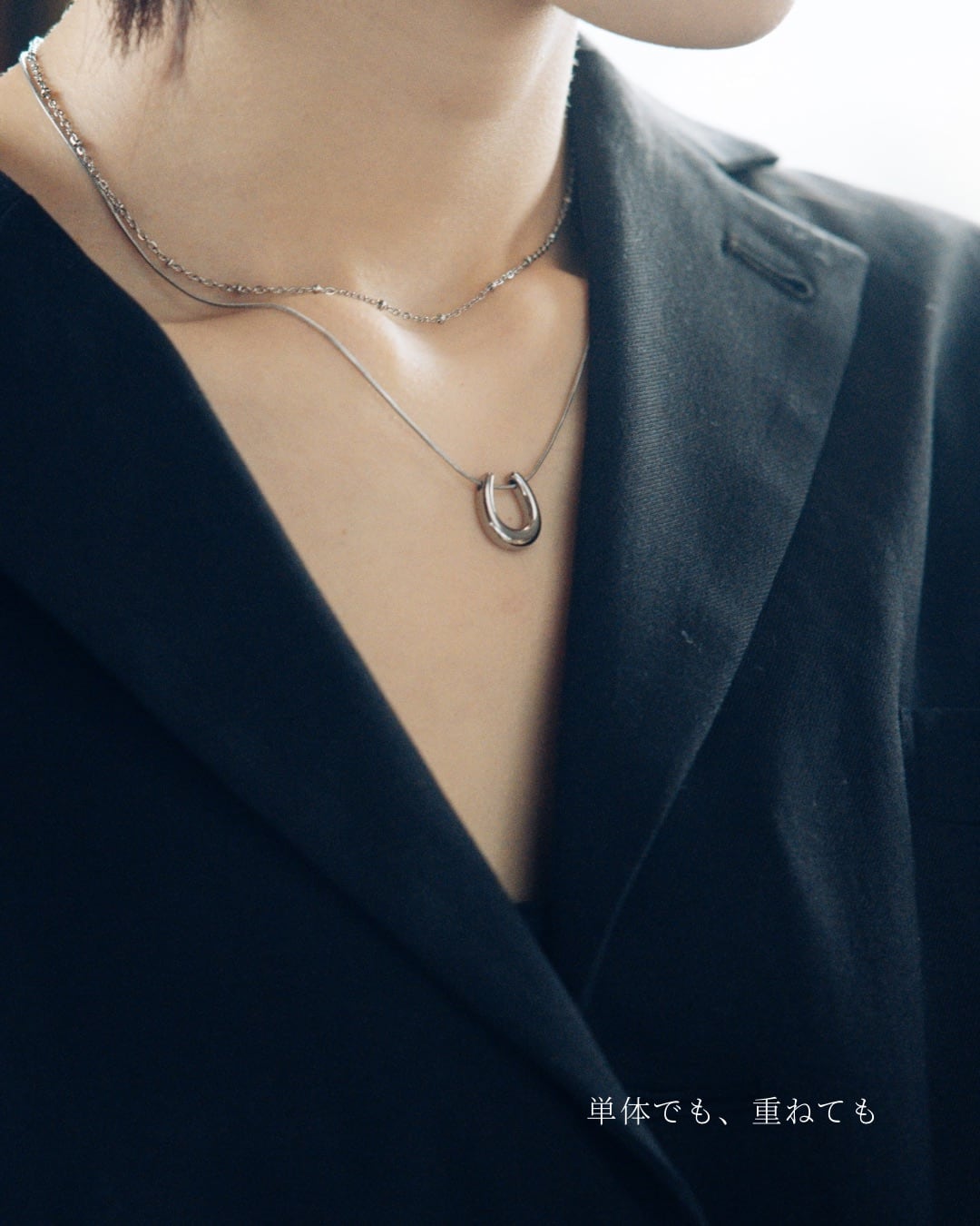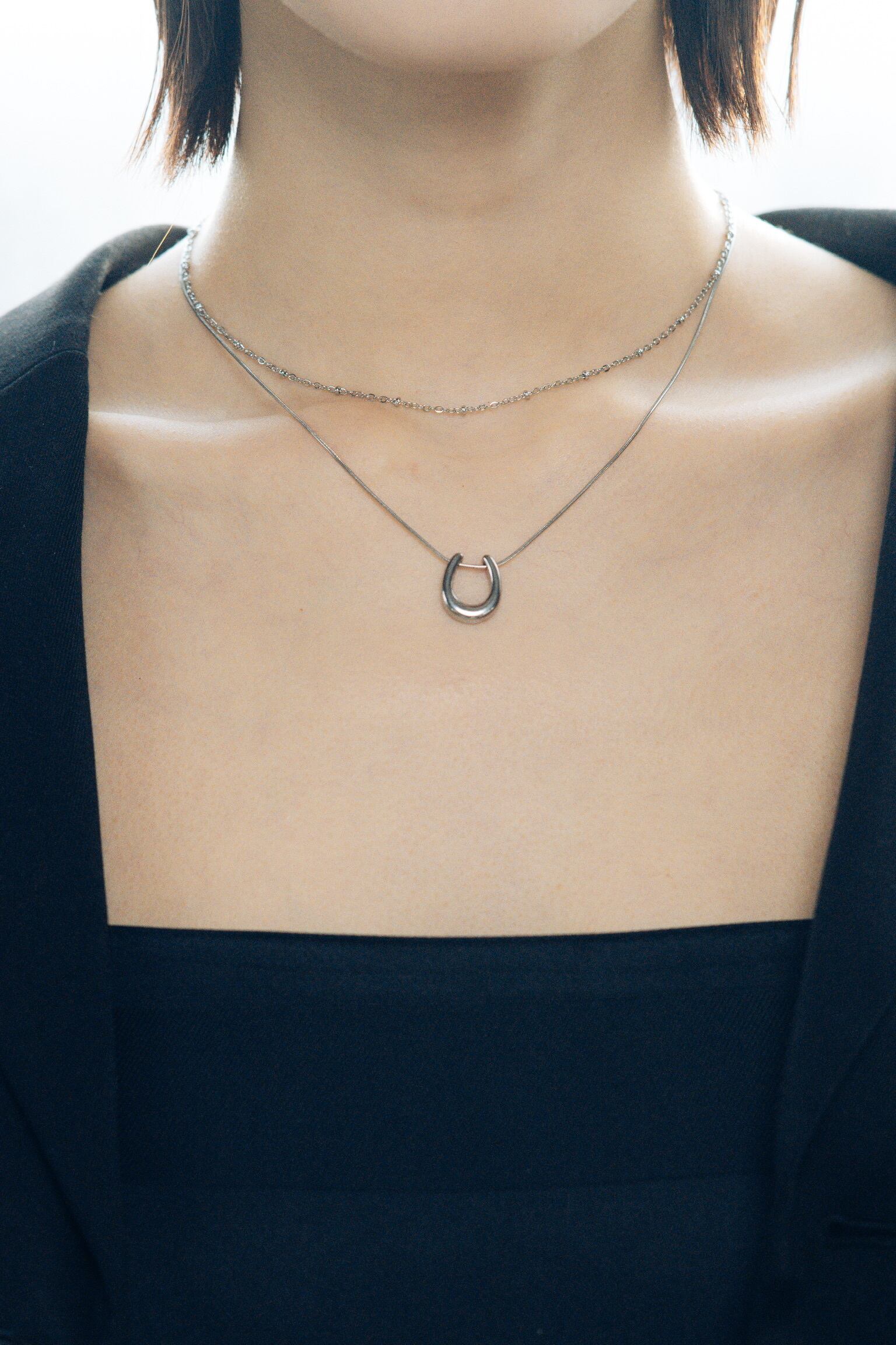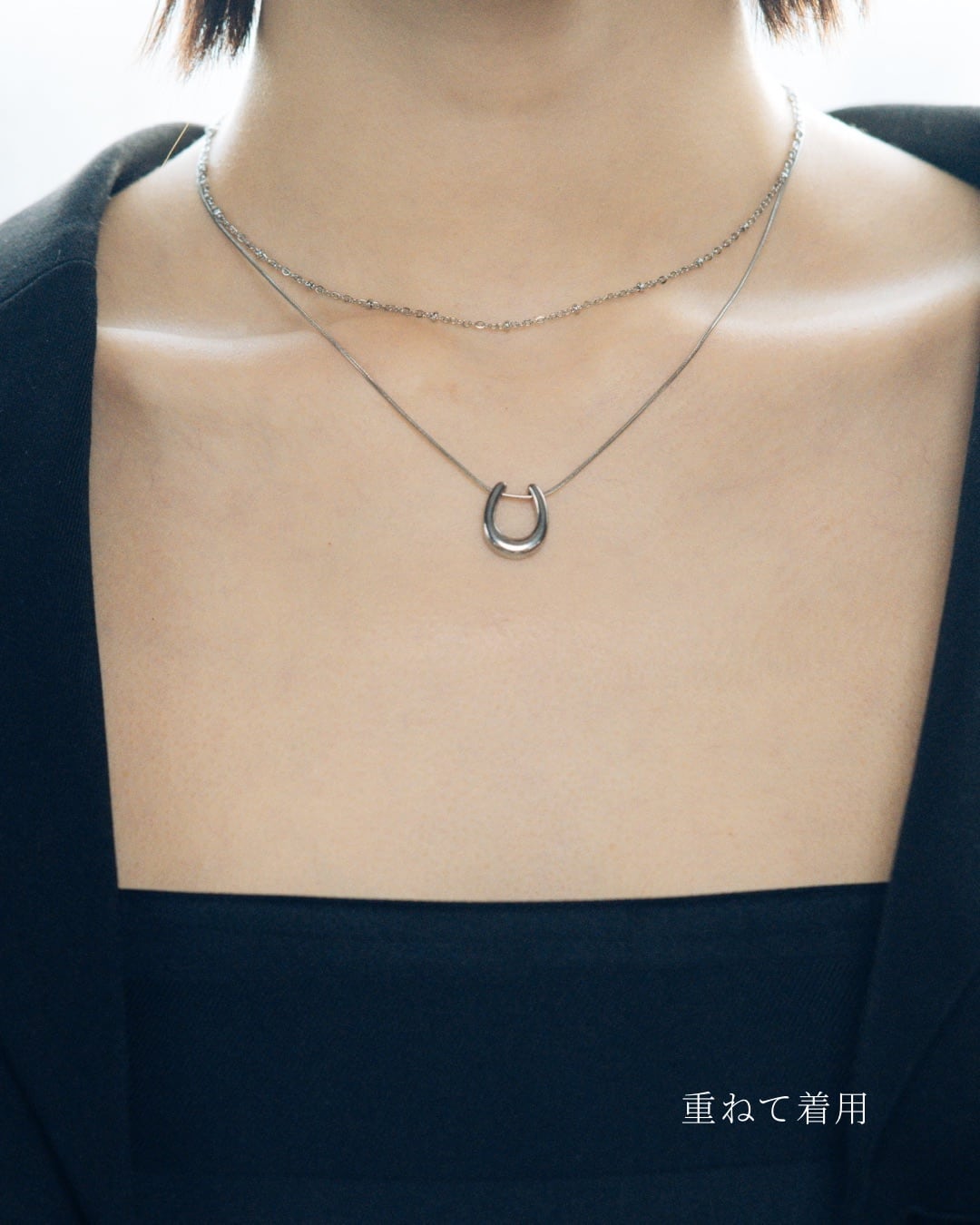 重ね付けネックレス 2本セット|horse × dot(silver)