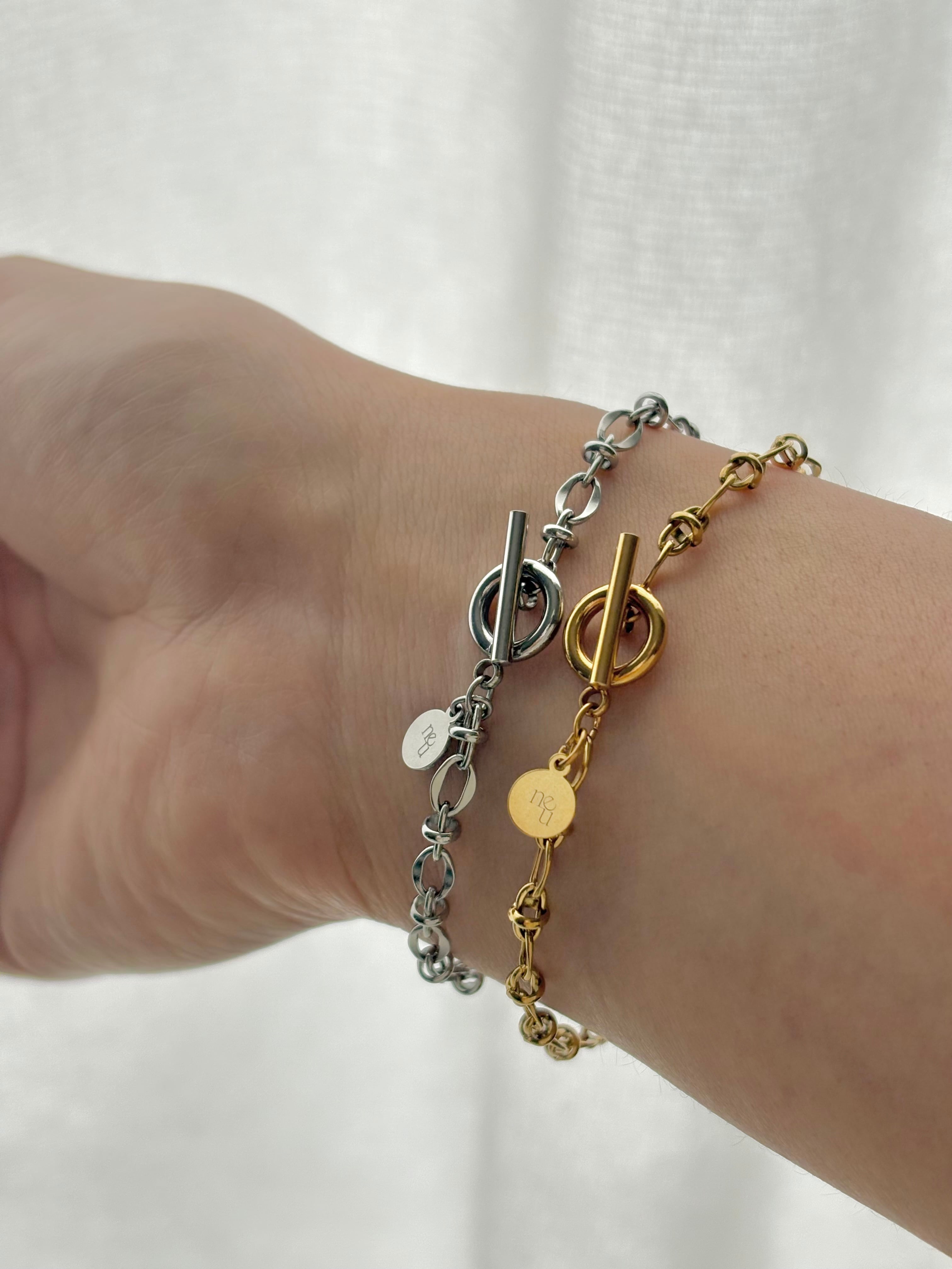 花びらのようなデザインチェーンのブレスレットです。華やかな装いを纏いながらも、その繊細な美しさから力強さを感じさせます。
