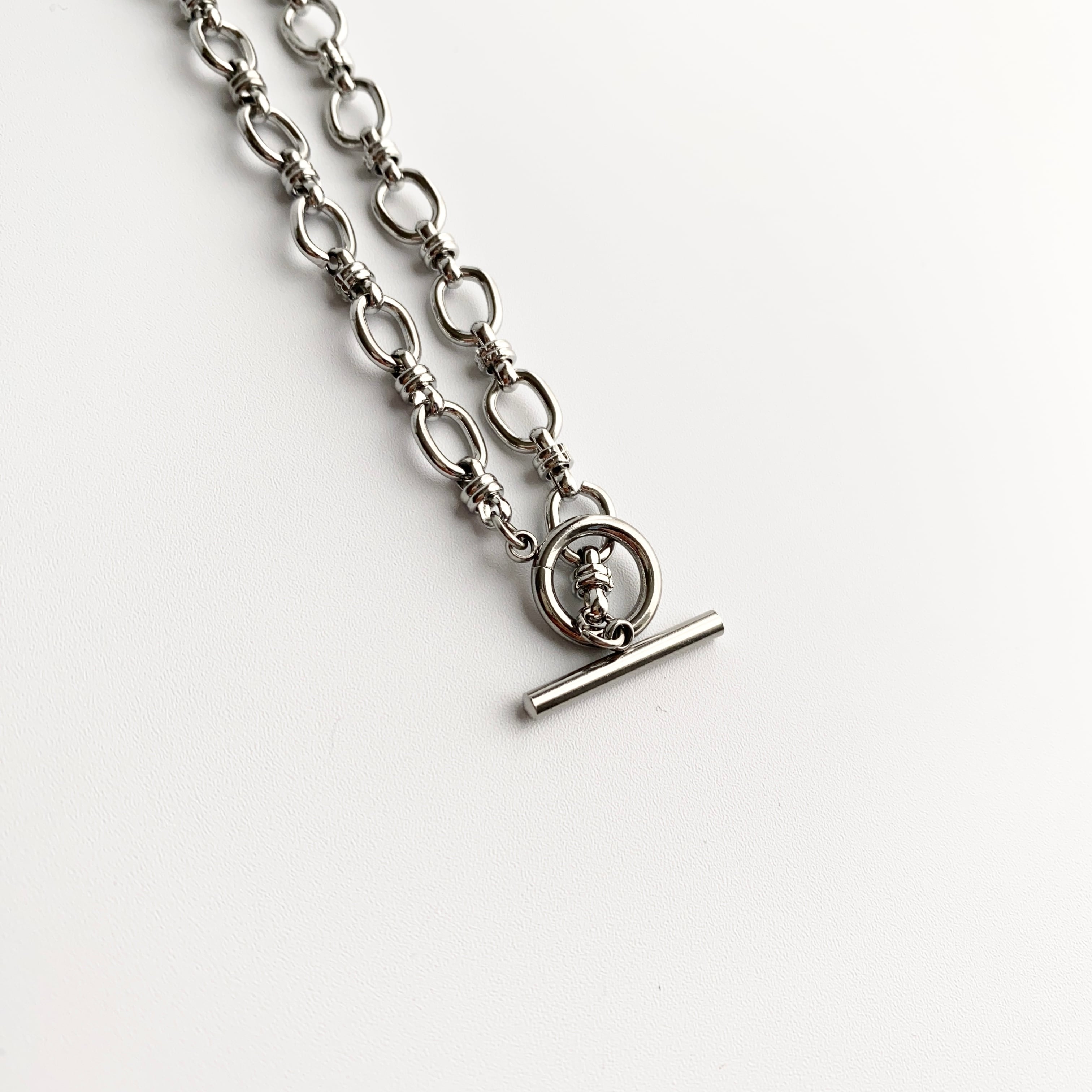 ①マンテルを後ろにしてシンプルなチェーン部分を見せます。